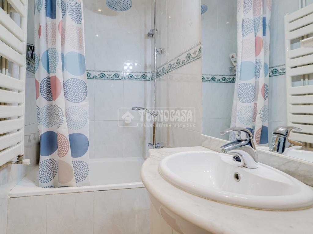 Cuenta con un baño completo con plato de ducha en la planta baja y un segundo baño completo con bañera en la planta superior, aportando funcionalidad al día a día.